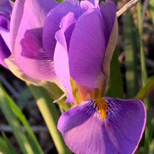 土手道ウォーキング👟 初夏に咲くアヤメより小型で、葉の中でそっと控えめに咲いている感じが可愛い💕 花言葉は「信じる者の幸せ」「思慮深い」「勇気」