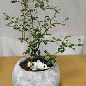 ミクロフィラ・ソフォラ 別名:はてなの木/メルヘンの木 名前に惹かれて植物を買ったのははじめてかも知れません。リス2匹は昨日園芸店で見つけました。