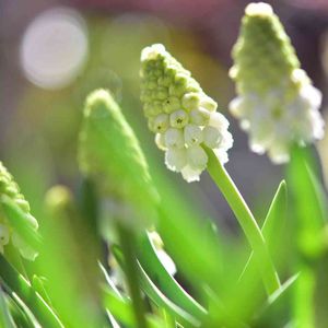 芽出し球根のムスカリ✨ 白に続いて水色も咲いてきました😃 春を感じるわぁ💕