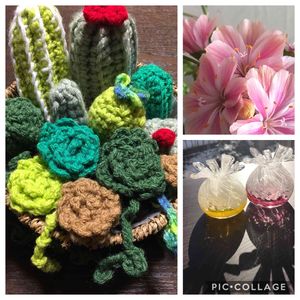 こんばんは! 紫陽花、アガパンサス😍 そして、桔梗も綺麗に咲いてます💓 爽やかです😊 久しぶりの登場の、編み編み達❤️ 孫が来たら、ママゴトに使われていたので玄関の下駄箱の上に避難しました! ちょっと狭いけど我慢して😁