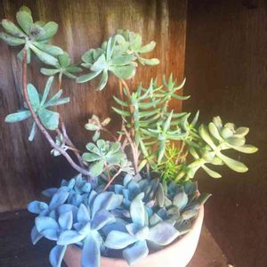 このちっこいアエオニウムが 何者なのか どなたか教えて下さいませ(^-^; 凄く白っぽいのです💦 バランスが悪いのはスルーしてください( *´艸`)