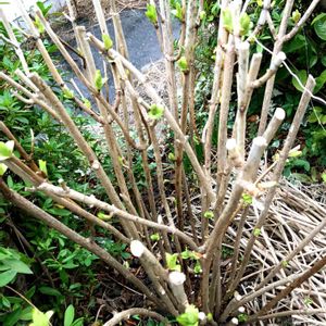 ずっと枯れてると思って、たまーに水やるくらいで切ろっかなー抜こっかなーと思ってたら、去年一輪咲いてびっくり仰天した八千代椿(右下)。 先週は蕾たくさん付いてるー!と思ってたら(左上)今朝膨らみ始めてる!(右上左下) ん?葉っぱない。こっから葉っぱ出るんかな?大丈夫かな? 立てば芍薬座れば牡丹歩く姿は百合の花