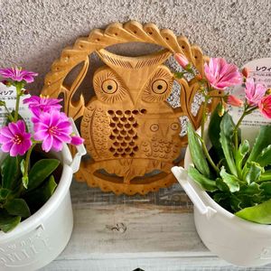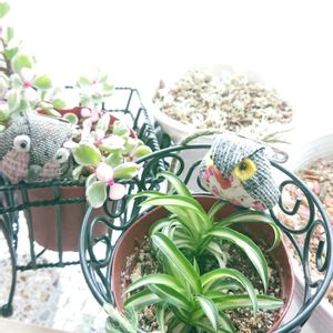 🏷ふくろう祭 今日はいい天気 棚から太陽に会うためにいくつかの🪴を出しました プランターの小さな隙間に置いてみた フクロウ🦉は風風の強い日に棚から落ちて足が😅😭 それでも土の上で清々しい表情をしています