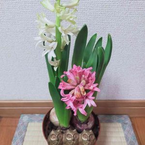 こんにちは。 今日は29日。 フクロウ祭🏷️ 参加させてください。 🦉さんの文鎮と 衝動買いした3色ヒヤシンス今の様子です。この感じだと 3色同時には見れないかな〜😅