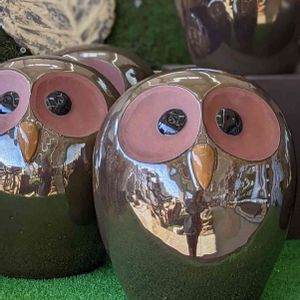 ホームセンターの園芸コーナーで、私を見つめていた🦉さんたち 「ゴメンね〜連れては帰れない🙏」 🏷ふくろう祭り参加します