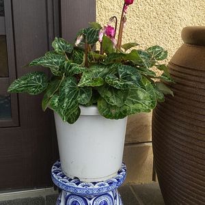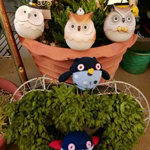 🏷ふくろう祭り 参加します。 頭に載せているのは、みかんの木の下で夏を越したシクラメンです。葉をかき分けてみると蕾がいっぱい🥰これからが楽しみ🤗