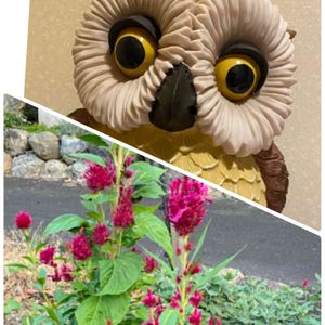 ケイトウを上から見てる👀 フクロウ🦉さん(ᴗ̤ .̮ ᴗ̤ )₎₎ෆ フクロウ祭りに参加させて頂きます… 時間が過ぎましたが🙇孫と花散歩٭❀*