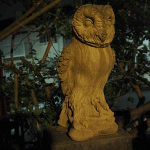 フクロウを探す③ まだまだいそうな庭なんですが、ここで探検は終わります 「森の賢者」って感じの梟で、このオブジェが一番好き