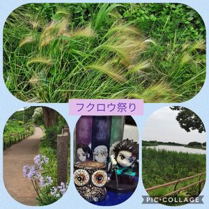 今日はフクロウ祭りです。💝 炭治郎も参加しま〜す。🌿 きらめき通り🍀🎶💚