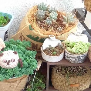 🏷フクロウ祭りに参加します 土日の雨、風が酷かったから庭には どこから飛んできたの?ってくらい 枯葉が落ちていました🍂 多肉ちゃんも強風で飛ばされた子がいたり 倒れてる子もいて…(¯∇¯٥) 今日は朝からいいお天気🔆🔅 JUSHIちゃんの多肉で寄せ植えつくりました チューリップ🌷もお花咲きました♡