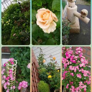 週刊天気予報で☀️探すけど、 🌧️🌥️多し… ☀️待ち遠しい… また霧雨… 庭の花達を集めて😌 薔薇紫雲、薔薇ビブレバカンス紫陽花アナベル、インパチェンス🍀😌🍀