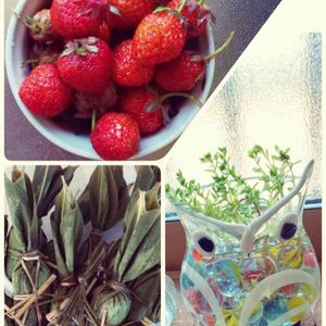 こんにちは😃 上 我が家のイチゴ収穫🍓 左 笹団子 貰いました😋 右 ふくろう祭り参加させてください😊🙇