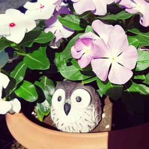 こんにちは 今日はよく晴れて暖かな日となってます みなさんのpic拝見してました フクロウ祭🦉🦉🦉でしたね 参加します 白い小花が咲く桜の下に花壇をつくりました 鎮座してますものご存じの方もいらっしゃるでしょうか 1998年長野冬季オリンピックの マスコットキャラクター スノーレッツ その中の一つです 五体あるのです それぞれに名前が付けられてましたが すっかり忘れてます😅 一応、フクロウさんです🥰