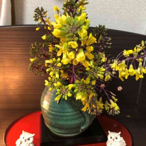 ちょうどフクロウの頭にお花が^o^ 名前は分かりませんが、可愛いです❤️