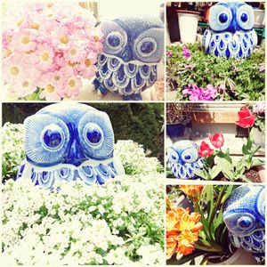 29日🎵 ふくろう祭り🎶 参加させて下さい☘️ うちには、この陶器の ふくろうちゃんしかいないので 今日のお庭のお花🌸さんたちと💓