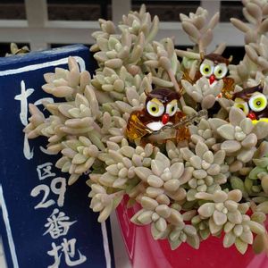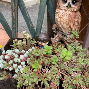 おはようございます(*^▽^*) 🦉🦉🦉🦉🦉🦉🦉🦉🦉🦉🦉🦉 🏷️ふくろう祭、ふくろうの日、幸福を呼ぶふくろう祭り、フクロウ祭に参加させて頂きます。 ホームセンターで見つけた可愛いふくろうの寄せ植えがあったので即買いしました! この寄せ植えのエケベリアは白牡丹でしょうか? 縁に爪があるので違う品種ですか? もふもふの月兎耳も可愛いです (* ´ ▽ ` *)💕