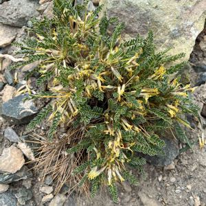 イワオウギ (岩黄蓍) マメ科イワオウギ属 7/22-23富士登山の植物レポート(その9) 下山中、御殿場ルートから富士宮ルートに合流するための登山道で撮影しました。 あと少しで六合目というところですが、最後の上りが辛い💦 幸いこの辺りは花が咲いていたので、花に勵まされてラストスパート❗