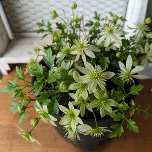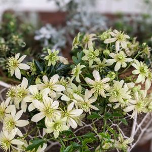 常緑木立姓のクレマチス♪ 控えめに伸びるつるなので 鉢植えにもおすすめ♡ 淡いなんとも言えないグリーンの小花は 今から5月いっぱい株一面に咲かせます 日当たりは大好きですが高温多湿が苦手です😭 風通しの良い所でなるべく涼しく夏越しを✨✨