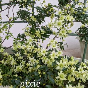 クレマチスピクシーが咲いてきました。カートマニージョーと比べるとお花が小さくてより緑っぽいですね。(お花の大きさ カートマニージョー>ペトリエイ>ピクシー)香りがあるって聞いたことあるけど、クンクンしたことないので香りを感じたことはありません。明日クンクンしてみよっかな😁