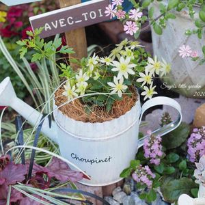 1枝だった、クレマチスピクシー、ヒナソウと一緒の籠の中🧺、小さな可愛い花が咲いてます🥰
