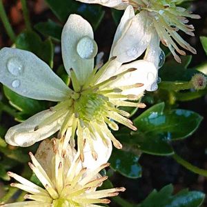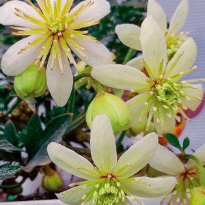 常緑クレマチス ピクシー 💚 お迎えしたのは2年前の春🌸 去年は残念なスッカスカ咲きでショック受けたんですよ💔 …理由はシンプルに私がこの子のお世話をサボったから😱 クレマチス育て、向いてないなぁと苦手意識があって💦 でも何とかここまで持っていけました🙌 マスカット色のお花から漂う甘い香り💚勝手にご褒美と捉えます💖←典型的なすぐ調子に乗るタイプw 左側のお花空白区域にレースリボンなんぞ結んだら母に「え、これ何?なんかついてる」って言われた🤣 乙女アイテムのリボンだってばよ フォステリー系のピクシーは寿命が5、6年だとか🤔 挿し芽っ子でバックアップ取ると安心ですね🌱🌼