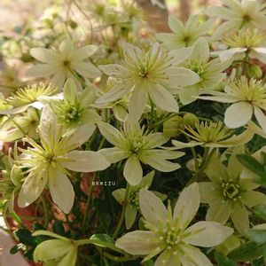 見切り品で緑色の花が咲くとだけ書いてあった100円のクレマチス 、「お名前教えて」で初投稿したものが咲きました。 ✿❁ͯ ̥∵✿❤︎✧*⁎✿ お花のの感じから多分ピクシーですね。 見切り品なので今年は花芽も少なかったけれど、来年はいっぱい咲くようちゃんと育てよう。❤︎