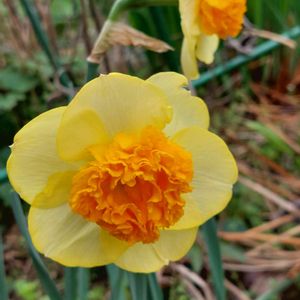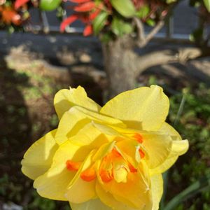 八重咲きの黄色い水仙さん💛 うちの庭の新入りさんで初咲き♪ 日陰でも 可愛く咲いてくれてうれしーぞ٩(^‿^)۶