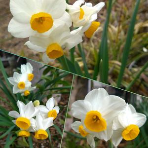 3/8 (土) 🌤 ①〜⑤💛🤍💚水仙💚🤍💛 ①②③⑤庭花壇にて,④歩道にて📷📱💛🤍💚