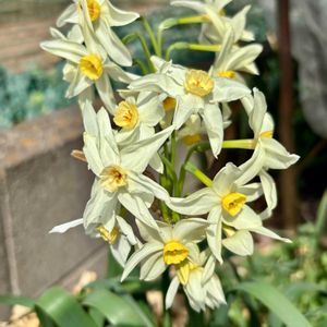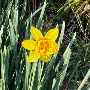 八重咲スイセン(ヒガンバナ科) スイセンの特徴の外側星形花びらはそのまま残り、中央の副花冠が多弁化した八重に。より華やかな雰囲気に。ただ子供の頃からスイセン!と言うと、副花冠が思いっきりタコチュー🐙のイメージが浮かぶ私には、葉っぱ見なければ何だか少々別花にも見えてしまったり😆 頭古い証拠かなぁ😅