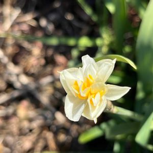 日本スイセンに続いて、八重房咲きスイセンが咲き始めました🤗 日本水仙よりちょっぴり華やかで、和を感じる好きな水仙です✨🤍🧡🤍✨ ③ 今年最初のクロッカス、白が1番で咲きました🎶