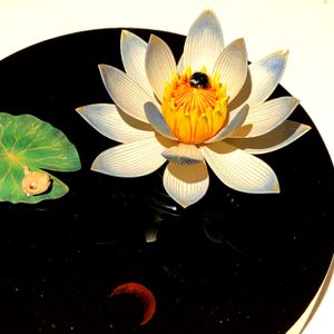 本物の花ではないですが 余りにも美しい作品だったので… 昨日、仏像の修復師、仏師、お坊さんであり、彫刻家の吉水快聞さんの個展へ行って来ました✨ NHKの番組「運慶と快慶新発見」「猫のしっぽ カエルの手」で紹介されていて、ファンになってしまいました〜🥰💓 蓮の花びらは葉脈状に金箔が、截金という技法でとても繊細な作品でした✨ よく見ると…小さなてんとう虫🐞も❤️ 色漆だそうです。 葉っぱの上にもちょこんとちびっこいカエルくん🐸 ドヤ顔です😆 びっくりするくらい細やかな技術で作られたお花や生き物達が、美しい上にもなんだか愛敬があってほっこり😌 癒しのひと時でした❤️✨