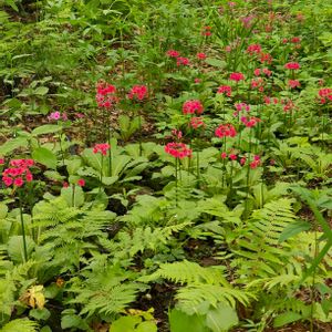 庭園内にある沢に咲いているクリンソウ