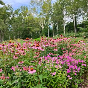 最後に白樺並木の中のウエルカムフラワー 北海道の花の季節はまもなく終わり 半年間はまた雪に閉ざされます だからこそ、花の季節をできる限り楽しみたいんですよねえ