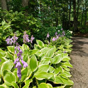 道端を彩るホスタの列 木陰なので元気です