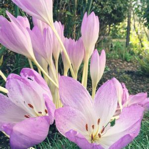 イヌサフラン(コルチカム) ユリ科 花はクロッカスに似ています。コルヒチンと言う物質が痛風の 薬として利用されているそうです。誤って食用にすると死亡 する事があるので注意が必要、、、少し怖いお話しですね😱 土が無くてもお花を咲かせる程、丈夫だそうです 国営武蔵丘陸森林公園にて🌲🌳🌿