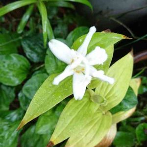 庭の白杜鵑草の花が咲きました。真っ白い花は日に当たると綺麗です。色んな所に生えてるので満開が楽しみです。