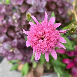 おはようございます♪ 玄関先の鉢植えが賑やかになって来た 地味〜なpicが続いてたけど やっとお花🌸が咲き始めました💕 可愛いエキナセア😍名前不明です pwのアルテルナンテラは摘芯無しでこのボリューム こぼれダネから成長した五色トウガラシパープルフラッシュ 冬越ししたアルテルナンテラ コタキナバル
