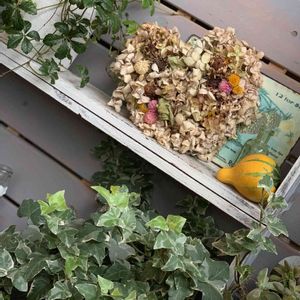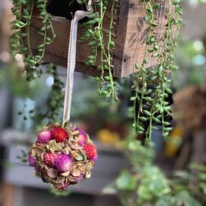 まんまるドライボール。 今度は オレガノに菜の花を 加えてみました(*^^*) 黄色が入って 可愛く なったかな?