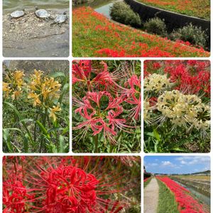 昨日、矢勝川沿いの彼岸花を見てきました♥️ 今年の春 緊急事態宣言中のため 集まって球根を植える作業が 中止になったそうです。 それを母から聞いていたので 今年はどうだろうと思っていたら!!このように 去年までの球根で見事に咲いていました♥️