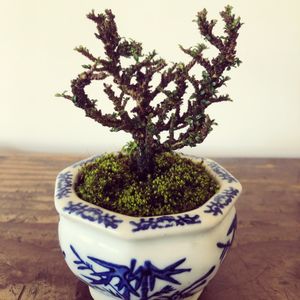 新しい仲間が2人増えました! まずは1人目!香丁木。 根っこがいい匂いするらしいけど匂うの忘れてた汗 小さい葉っぱがかわいいので中華感のある鉢にしてみました⭐️