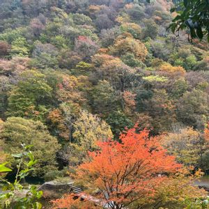 せせらぎ街道(郡上から高山に続く街道) 紅葉🍁のシーズンは この道は とっても心地良くドライブできる👍 もう少し 赤色が入っていると もっと素敵になるかなぁ🤔なんて 思ってしまうけど 我が家の周りには こんな色とりどりに色付く山は ないので 文句言ったら バチが当たるかしら😅 その山の所々に 枯れた木が混じっているのは 4枚目の右上↗️の朴葉の木でした🤗 そして 途中の道の駅で食べたランチは 朴葉味噌焼き定食🎶🤣✌️