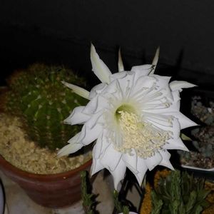 夕方から今朝まで怖いほどの雷⛈️と大雨☔️で今は小降りです。 そんな中サボテン🌵キンセイマルが咲きました。