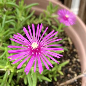 画像1/松葉菊 花火のようで綺麗です〜 画像2/ニラの花 画像3/セローム 8月10日に最後の新葉が開いてから次々と葉が黄色くなり、全ての葉が枯れて落ちてしまいました(・∀・) でも、残った根元から新芽🌱🌱🌱🌱発見! 画像4/キンセイマル 子吹き、大きくなったかな〜 あんまり変わらないか… 画像5/今日の収穫 少なめです(//∇//)