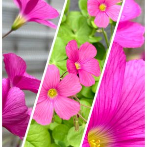 画像1.2/カタバミ 綺麗なピンクですね^ ^ 🩷🩷🩷 画像3/サボテン (上2枚)キンセイマル 子吹きがだいぶ大きくなりました。 (下2枚)バニーカクタス&白檀 みょ〜ん…うさぎさんのお耳になってます ╰(*´︶`*)╯♡ 画像4/小松菜 種まきから26日目です。 プランターを超えてきました〜 画像5/今日の収穫♪
