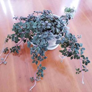 5/12に一度投稿したミカニア ・デンタータ。 acoさんからホワイトの鉢をご提案頂き、その後間もなくこちらの植木鉢を見つけて植え替えました。ブラックの葉にホワイトシャビーがいい感じ。♡ 屋外の日陰で順調に夏越し中ですが、昨日は台風を避ける為に室内へ。取り込んだついでに、蒸れている葉を取り除き剪定しました。✂️ 毎日水遣りするので、結構蒸れてましたね。風通し良くしておかないと🎐