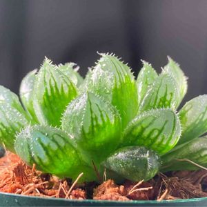 こんばんは🌛今日は久しぶりに☀が出た気がします😅最近、色々忙しくお迎えしたハオのご紹介が滞っています💦😓 picはハオルチア237号の🌵ブルーレンズ・ベヌ交配×赤線レンズ🌵吉田園芸部さんからお迎えしました💖薄皮で針で突いてみたくなります😄