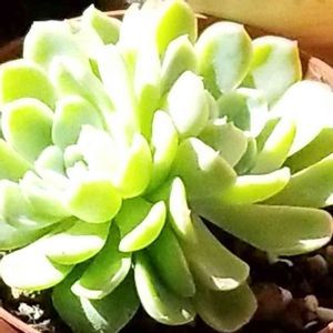 こんばんは🍀 きょうも一日お疲れさまでした✩*॰¨̮ 今朝出勤前に エッジが色ずいてきた胡蝶の舞をパシャリΣp📷ω・´) 成長点のツヤツヤにうっとり☺️ 明日は休み!まだ植え替えを待っている子がいるので多肉ごとをって 思っていたけど 予報では雨☔ 仕方ないので… 玄関の中に持ち込んで作業するかなー😅