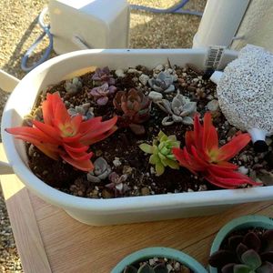 こんにちは。多肉植物ちゃん寄植えです。よろしければご覧ください。子株が増えてきたので一つにしました。