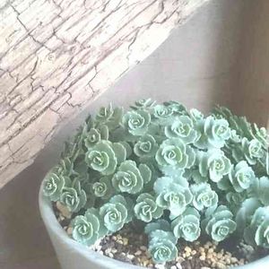 紫晃星という多肉さんに初めてお花が咲きました🌸✨ しばらく蕾のままでしたが、ベランダに出してお日様に当たったらパカっと❤️ 今日は夏のような陽気です☀️