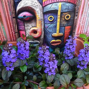 令和7年4月22日(火) 去年、優しい花友さんにたくさん株分けして頂いたプランターのアジュガちゃん😄💜💜💜my Garden🌼にもたくさん咲いています👏✨️金柑の木の根元を埋め尽くすセダムちゃんをかき分けて、ここにも咲いています😅側にいるガーデンシクラメンちゃんも、セダムのベッドが好きみたい😜(笑)春ですね🌱 今日は良いお天気☀️なので、愛犬シェリーとお弁当🍙持って、my Garden🌼でのんびりガーデニングします😊🐩🌿🩷 皆様、良い1日を☘️
